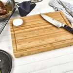 🔹 شیار دور تخته → برای جلوگیری از پخش شدن آب گوشت، میوه و سبزیجات روی میز.