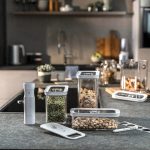 مرتبسازی انبار یا گنجه آشپزخانه به وسیله استک کردن ظروف مختلف با سایزهای متفاوت و استفاده مناسب از فضا.